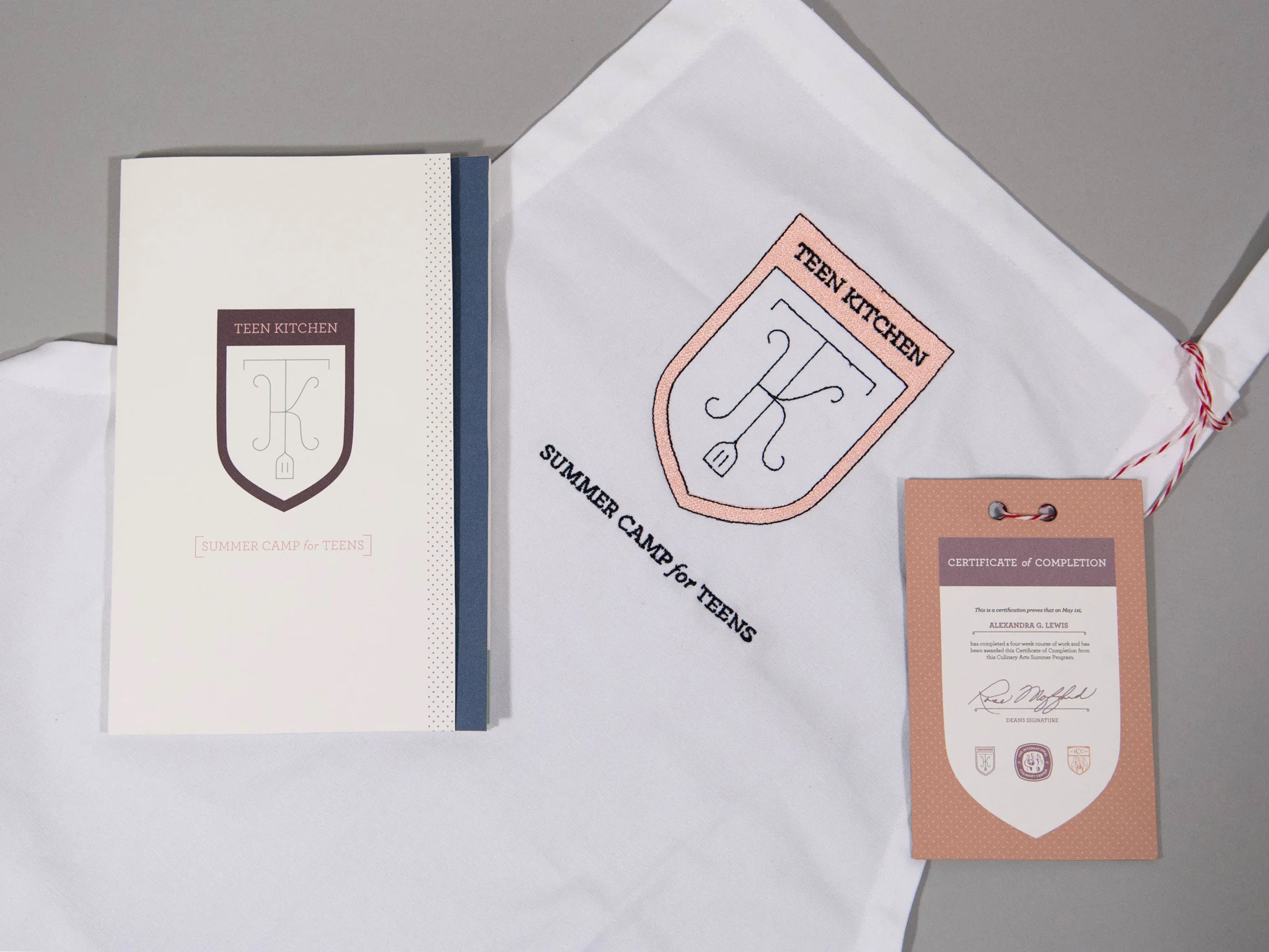 A simple brochure for children promoting a high end cooking school located in New York city. My main deliverable is a brochure for this elite cooking academy, which centers on summer classes that teach teens how to cook and back. I played up the sophistication of this program and created an elegant crest-inspired logo with a monogram for Teen Kitchen. I illustrated the booklet and created an interesting type hierarchy to make the brochure engaging and easy to understand.